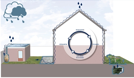 Het duurzaam omgaan met [regen-] water. De tuin is daarop al ingesteld. tekening © btl .................................................... |