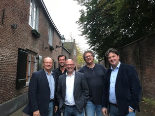 De redactie van 'Oeteldonk voor beginners': vlnr: Rob van de Laar, Huub van Mackelenberg, Bert Damen, Hans Tervoort en Roger Schouten. foto © gérard van kessel, november 2017. ..................................................................................................................... |