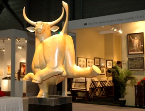 'Links: Dansende Stier' van Evert den Hartog. Galerie Mark Peet Visser 's-Hertogenbosch. |