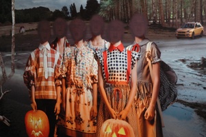 Een 'bewegend' kunstwerk van Carmen Freudenthal en Elle Verhagen getiteld 'c-print video 2007, ook aanwezig in de Museumstand. Helaas zijn op de foto, door de beweging, de hoofden van deze werkelijk 'Zingende meisjes' vervaagd. |