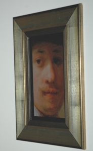 | **Enkele opnamen uit de chrologische sequentia van zelfportretten van Rembrandt van Rijn, een digitaal kunstwerk van de Hongaar Péter Forgács, dat door het Filmmuseum werd aangekocht en in Den Bosch is tentoongesteld. | Met het geld van de Vuurslagprijs werd dit digitaal werk aangekocht. | foto's © paul kriele, 18 april 2009. |