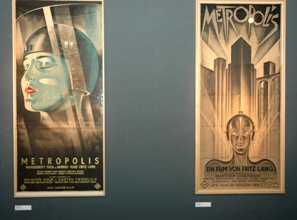 Twee van de vier topstukken van de collectie van het Filmmuseum uit een serie van vier affiches [1927]. Volgens directeur Den Hamer zijn ze een miljoen euro waard en '.. alleen voor het dubbele te koop..'. Links het affiche van Werner Graus en rechts dat van Heinz Schulz-Neudamm, beiden getiteld Metropolis en beiden uit 1927. Ze hangen op de Art Fair in de stand van het Filmmuseum. foto © paul kriele, 18 april 2009. |