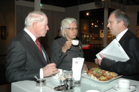 -Geheel boven links: het echtpaar Clemens en Neeltje van der Ven, initiatiefnemers van de Tefaf in Maastricht, in gesprek met prof. Jos Koldeweij.