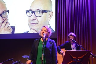 | foto's © paul kriele,28 november 2017. | De muziek werd verzorgd door Floor Baselmans [zang en gitaar] van de Koningstheaterakademie. en [hierboven] door Eva Willems en Teun Beurskens Beiden zijn ook afgestudeerd aan de Koningstheater Akademie.. |