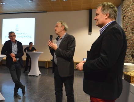 Slechts 7% leest een E-book, stelde Akink. Op vragen hoe de wethouder denkt over de omslag van de lezers naar het digitale landschap, zei Van Olden: 'Ik maak me zorgen over dat schrijversklimaat.'