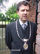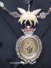 | Sedert zondag 3 september 2006 is Kees van den Oord aangesteld tot processiemeester. Die functie behoort ook tot de traditie van de Bokhovense bedevaart. | Close-up van de 'Cornelisketting', die afkomstig is uit de St. Pieterskerk in 's-Hertogenbosch en naar Cornelius in Bokhoven kwam. foto's © gerard monté, 3 september 2006 |