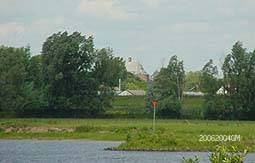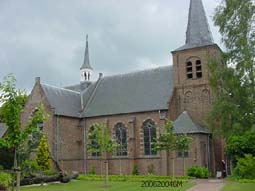 | Aan de positie van Bokhoven werd vaak getrokken en het territorium werd vaak betwist: Gelre en Holland trachtten het meermalen te veroveren/Heusden leek het te claimen/Den Bosch schenkt er te weinig aandacht aan... | Kortom Bokhoven ligt ingeklemd tussen de politiek, de rivieren en -in het verleden -enkele Staten en steden. Links de open lucht kerk. foto's © gerard montée. 20 juni 2004. |
