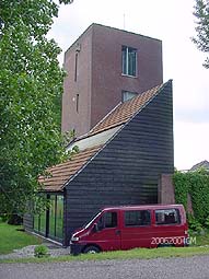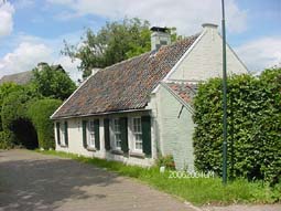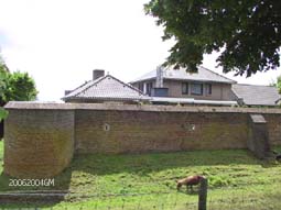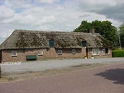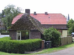| Op de plek waar ooit het Bokhovens kasteel stond, wordt nu ingenomen door een huis gebouwd in de stijl van de Bossche School... . Rechts: een typische Brabanste langgevelboerderij. Boven rechts: boerderijtje langs de dijk. foto's © gerard monté, 20 juni 2004. |