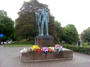 Het herdenkingsmomument aan de Hekellaan, waar jaarlijks op 4 mei door politici, functionarissen en andere betrokkenen bij het maatschappelijk leven en leerlingen van de basisschool Bossche Broek -centrum en het St. Janslyceum een krans leggen of op een andere manier diegenen herdenken die in oorlogs- of in vredestijds zijn omgekomen. Ook bij het scholierenmonument in de Casinotuin [Joodse slachtoffers] en bij de monumenten in Engelen, Rosmalen en Empel vonden herdenkingsplechtigheden plaats. foto © paul kriele, 5 mei 2009. |