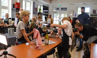 Impressie van de kookmiddag van 6 oktober 2018. De zeventien teams werden in tweeën verdeeld, de ene groep begon aan een fotoshootsessie van hun voorbereidende kookactiviteiten en de andere aan de kooksessie.