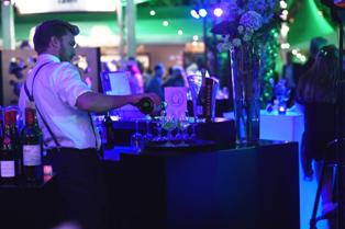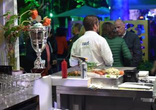 Impressie van de stand van Cé de nieuwe naam voor het bistrodeel van Hotel Central. Links directeur Karin Rademaker met burgemeester Jack Mikkers en wethouder Huib van Olden l.] . foto's © henk van esch, 14 september 2018. ....................................................................................................... |