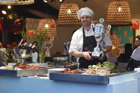 | Trots toont Steef Spanjer de grote bokaal die hem werd uitgereikt vanwege de mooiste en beste ingerichte stand op Bourgondisch. foto © henk van esch, 14 september 2018. ................................................................ |