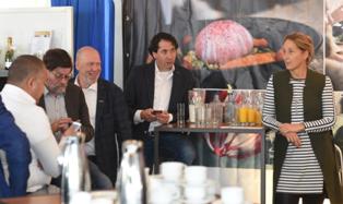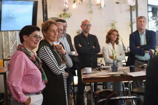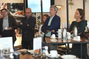 | -Boven links: Karin Rademaker, de vice-voorzitter Helga Gerritsen Horeca Nederland afdeling Den Bosch, Sjef van Crey, Rianneke Mees-Huibersen en Sjef van Crey. -Rechts: Paul van de Krabben [Bosch Belang] ,Karin Rademaker [Hotel Central], en Ben van Herpen [Leefbaar] en rechts op de rug Fouad Abbouti [PvdA]. -Hieronder: Fouad Abbouti [PvdA], Antoon van Rosmalen [Groen Links], Bernard Kuenen en Otto van den Groendaal en Helga Gerritsen [Horecabond]. -Rechts onder: André Rotman [VVD] Annemarie Hoog-Antink [D66] en op de rug gezien Ralph Geers [CDA].. foto's © henk van esch, 15 september 2018. |