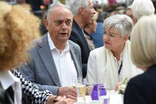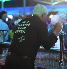 | -Hierboven: Plebaan Gertjan van Rossem. -Rechs: De éminence grise van de Peperhoek, zo jong als een hoentje .. -Rechts: ..en dan deze ladies.. met o.a. kunstenaar René van Leusden.en 2e v.l. de moeder van de plebaan mevrouw van Rossem. -Rechts onder: Nog meer ladies o.a. van Bagatelle. -Hier onder: De 'snijtafel' van Barrique. -Onderaan: Heinekenman Van Drost met mevrouw Habets bestuurslid Bourgondisch. foto's © henk van esch, 15 september 2018. |