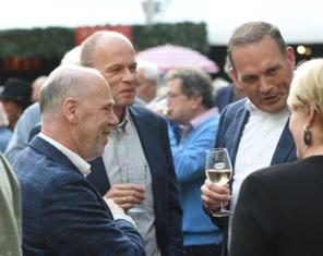 -Boven: Bernard Kuenen in gesprek met Gaby Westelaken. -Rechts boven: Bernard Kuenen, Kabinetchef Jan de Wit, Bourgondischvoorzitter Edgar Dissel. -Rechts: Rhodos eigenaar met makelaarsechtpaar Monique Persoons en Peter Kempe. ......................................................................................................... |