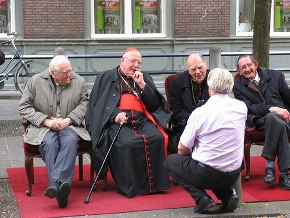 Rechtsboven: mgr. kardinaal Simonis en emeritus bisschop Jan Bluyssen en naast hem diens toenmalige secretaris.