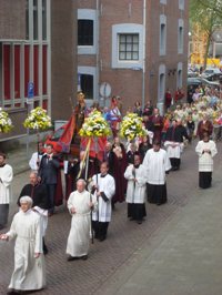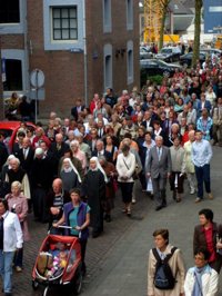 | Onder: het wonderbeeld passeert de Peperstraat/hoek Verwersstraat. | foto's © ellen elemans, 10 mei 2009. |