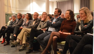 | Bestuur resp. genodigden van resp. aan de opening van het Erasmusfestival in de Willem Twee [voorheen de Toonzaal]. Vvlnr: Ans Buys, oud-burgemeester Ton Rombouts bestuursvoorzitter van de stichting Erasmusfestival Brabant, Heleen Herber, Jan van Velthoven, de gespreksleider Jantine Schuit onderwijsdecaan bij de UvT, een van de sprekers Ides Debruyne en Sarah Leers en Angelique Penners. Stadschroniqueur Eric Alink staat op dat moment op het spreekgestoelte. foto © paul kriele, 21 november 2018. .................................................................................................... |