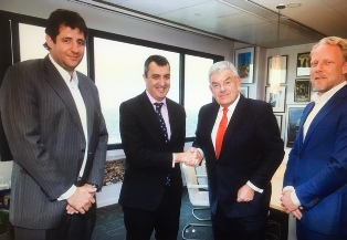 -Links Moment na de ondertekening van Utrecht als stad van de start en de ploegentijdrit voor de Vuelta met burgemeester Jan Zanen 2e v.l. en Martijn Hulsteijn. Links de Spaanse delegatie met Charles Ovaija en Vuelta directeur Javier Guilén. foto © ruud voest, 11 december 2018.. |