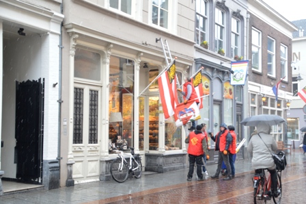 ![]() De eerste vlaggen zijn zaterdag 2 februari 2019 in Oeteldonks' straten opgehangen. Bij ordenaorissen [sponsoren] in onder meer de Hinthamerstraat, Vughterstraat en Kruissstraat werd de rood -wit -gele vlag uitgestoken. Dat deed een team met Rob Pols en Alex Stevels olv de minister van het Technisch Ministerie Jonas Hendriks. Later volgen nog de banieren aan de houten palen rond de Markt en op de Stationsweg. foto's © paul kriele 2 februari 2019. |