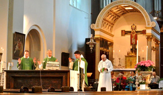 | Laatste H.Mis in de St. Cathrien op 27 juni 2015 met onder meer plebaan Gertjan van Rossem als celibrant. foto © toine janssen, 27 juni 2015. .,........................................................................................................... |