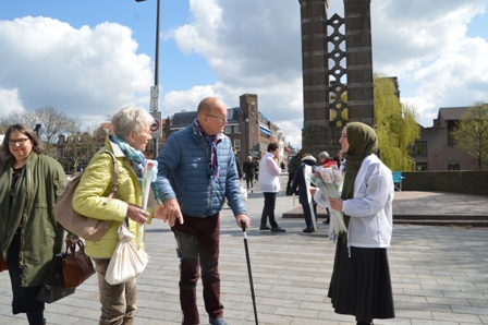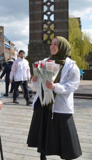 Moslims maken goed gebaar met het uitreiken van rozen