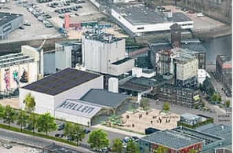 Terrein voormalige veevoederfabriek beter bekend als de Tramkade, met vooraan de Kaaihallen gelegen langs de Veemarktweg en rechts onder de bioscoopzalen van de Verkadefabriek. .......................................................................... |