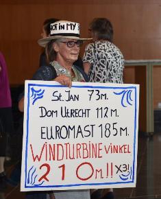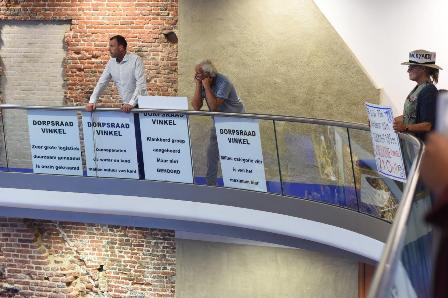 Protest tot in de raadszaal door ruim honderd demonstranten uit Vinkel tegen de komst van windmolens bij hen in de buurt. foto © henk van esch, 2 juli 2019. ................................................................. |