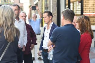 Boven en hieronder: De raadsleden Pieter Paul Slikker [PvdA] en Judith Hendrickx [De Bossche Groenen] lieten zich door de protestgroep informeren. |