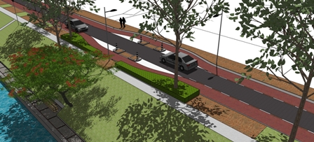 Afbeelding uit de plannen voor de aanleg van de zgn. Kanaalboulevard tussen Sluis O en het Kardinaal van Rossumplein. In dat plan zijn acht parkeerplaatsen, drie verkeerssluizen en het kappen van zes bomen voorzien. ....................................................................... |