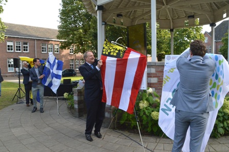 Vervolgens hebben de wethouders Thom Blankers van Gemeente Heusden, Peter Raaijmakers van Gemeente Sint-Michielsgestel, Peter Pennings van Gemeente Vught en Huib van Olden van Gemeente ’s Hertogenbosch elk een van de Zuiderwaterlinie vertelborden van het beleg van 1629 onthuld.