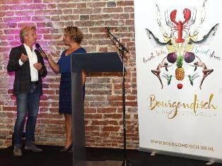 | -Boven: Edgar Distel voorzitter van Bourgondisch 's-Hertogenbosch. Rechts boven: Susan vanIersel van Communicatie in gesprek met juryvoorzitter Bob Hutten. -Rechts: Soenil Bahadoer van Restaurant Lindenhof. foto's © henk van esch, 9 september 2019. .............................................................................................. |