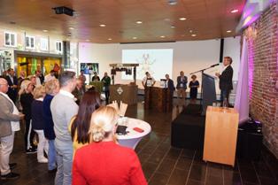 -Links: De zaal van het Bestuurscentrum. -Boven: Burgemeester Jack Mikkers in gesprek met Karin Rademaker van Hotel Central. |
