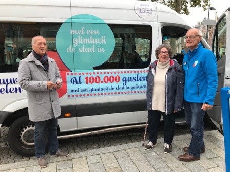 De gratis busjes van de Blauwe Engelen hebben zaterdag 12 oktober 2019 de 100.000ste passagier verwelkomd. Dat gebeurde bij de opstapplaats op het Stationsplein. Daar werd het Haagsche echtpaar Marius Schoon en Cornelia [Schoon-] Peters –op weg naar Het Noordbrabants Museum - door het bestuur van de overkoepelende stichting Gastvrij ’s-Hertogenbosch gehuldigd.