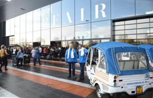 | -Boven: Entree en het tuktukvervoer naar de parkeeplaatsen. -Rechts Rondgang met wethouder Huib van Olden en Irene Moors en Jeroen Dona. |