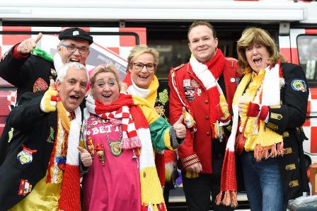 | -Hierboven: Het reportageteam van Omroep Brabant dat zich dit keer richtte op Oeteldonk. -Hieronder: Toespraak van burgemeester Jack Mikkers. foto's © henk van esch, 11 november 2019. |