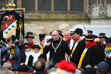 Op maandagmorgen d’n Elfde van d’n Elfde was het topdrukte op de Parade, waar Peer van denMuggenheuvel en zijn collega Peerke met hun direct gevolg [assessoren en Driek Pakaon] het carnavalsseizoen 2019-2020 openden. Volgens d’n Peer in zijn korte toespraak zouden er 11.000 Boeren en Durskes op de Parade hebben gestaan. 'Er wordt vandaag niet gewerkt, alleen maar carnaval gevierden,' aldus d’n Peer in zijn openingswoord van het carnavalsseizoen 2019-2020. 'Ik heb er wel een maanden op moeten wachten, maar vandaag is het dan zover,' sprak d'n Peer. Hij besloot met ik heb het niet zo druk te hebben verwacht. Ik ben er trots op dat we samen Oeteldonk mogen zijn.'