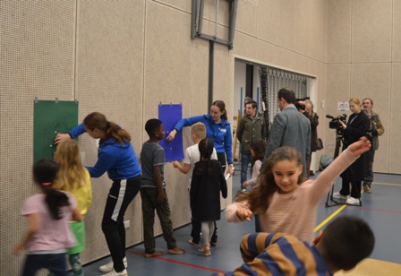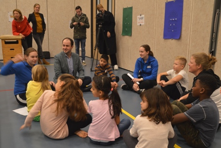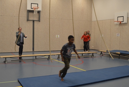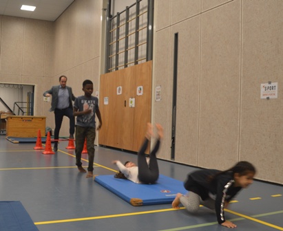 Het leuke voor de leerlingen was dat een echte stadsbestuurder ook aan dat parcours deel nam. De wethouder van onder meer Sport Ufuk Kâyha klom in de touwen,ging over een ‘paard‘ en rende zich rot , zoals ooit een tv-programma heette. Aan hun enthousiasme te merken, leken de kinderen extra hun best te doen. Na afloop was er nog een kringgesprek met de wethouder, de drie gymleraressen en met schooldirecteur Anouk Schipper. Daarin werd de jeugd bevraagd wat zij aan gezond eten doen, of zij ook vaak bewegen. Op een tegenvraag uit de groep ‘Hoe de wethouder dat doet?’, was Kayha’s, die zelf uit Boschveld komt, antwoord dat hij vier keer per week ’s morgens 5 km hard loopt en meestal met de fiets naar zijn werk gaat.