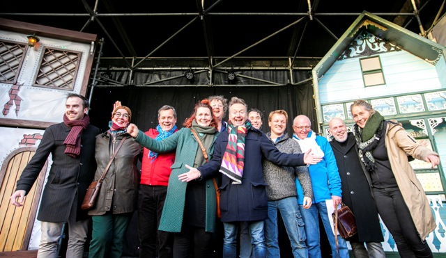 | Bij de opening van het Winterparadijs op zondagmiddag 8 december 2019, die overigens op gezag van de KRO pas om 20.00 uur plaats vond... werd van de verantwoordelijken voor de organisatie een groepsfoto gemaakt met wethouder Mike van der Geld [uiterst links] en Joris Linssen [middenin]. Verder vlnr. Karin Rademaker van Hotel Central, Ton Kranenburg voorzitter van Hartje Den Bosch, Nicolette Kempers van de SOCH , links achter Joris Linssen Hans Tervoort en rechts achter Joris Otto van den Groenendaal van de PEP. Dan verder Marijn Roelofosen van Marijn Productions, Henk Engel woordvoerder van De Blauwe Engelen, Bernard Kuenen van PEP / Paradeondernemers en Helga Gerrits Horeca Nederland afd. Den Bosch. We misten op dat moment alleen nog de jarige Jan de Wit [gemeente]. foto © sandra peerenboom, 8 december 2019. |