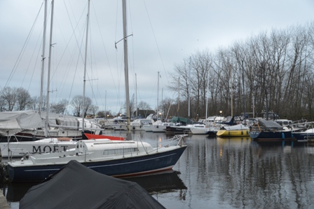 | -Het nieuwe Schultelokaal en de Vikinghaven met zo ongeveer ruim 200 boten. Het dubbellokaal bevat een vergaderlokaal, cursusruimte, bestuurskamer en sanitair met kleedruimten. Het ontwerp is van architect Ronald Wilken die geïnspireerd raakte door Noorse vissershuisjes. -Hieronder de haven waarover havenmeester Wim Wijgen de scepter zwaait en diens vrouw het clubhuis beheert. foto's © paul kriele, 21 december 2019. |
