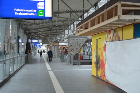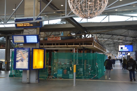 Meteen bij aankomst op de passarelle van het station valt de verbouwing van Smullers snackkoerier op. foto © paul kriele, 15 januari 2020. ...................................................................................... |