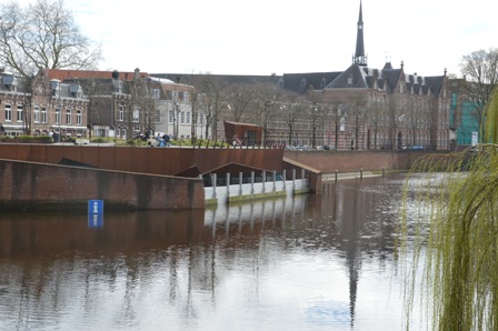 | Het waterpeil in de rivieren is weer aan het dalen. Het Sint Jansbolwerk met een restaurant en een dependance van de Kring Vrienden van 's-Hertogenbosch, moest zich een maand geleden met schotten langs het terras beschermen tegen het opkomend Dommelwater. foto's © paul kriele, 18 maart 2020. |