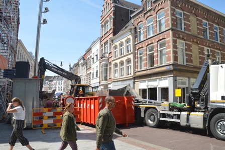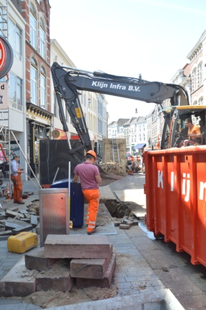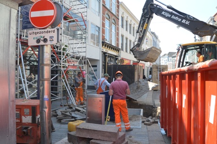 De Vughterstraat was deze morgen 26 mei 2020 tot in de middag, ter hoogrte van de Snellestraat-Achter het Verguld Harnas, geblokkeerd. Daar stond materieel van Klijn Infra en Bom Machine verhuur. Zij waren bezig de ondergrondse containers voor Vughterstraat 2 en 4 voor nieuwe te vervangen. Daar moest tevens de grond worden aangevuld. Verkeer kon er geen doorgang vinden.