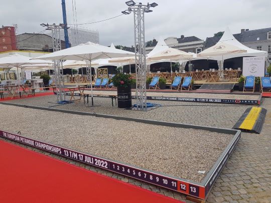 Bericht van 21 juni 2021 De stad heeft het EK petanque binnengehaald. De Europese jeu-de- boulesbond [CEP] was ingenomen met de locatie [onder de St.Jan] en het [rand-] programma van dit Frans getinte evenement, dat van 13 t/m 17 julli op de Parade plaats vindt. Het vorige sport- EK was het handboogschieten in de zomer van 2019.