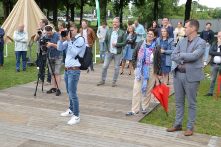 | Bij de start op de Pettelaarse Schans waren-naast een twintigtal bewoners van Zuid -vele betrokkenen uit de Bossche samenleving, zoals de horeca, de Stuurgroep Bossche Zomer, Cultuur, hotelwereld en andere ondernemers en marketing en communicatiebureaus etc. uitgenodgd. foto © paul kriele, 1 juli 2020. |