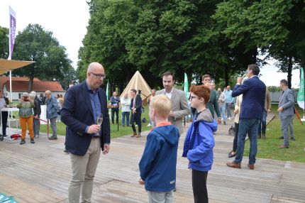 Start Bossche Zomer bij reuzenrad Pettelaarse SchansMet een zwiep aan een mini [ reuzen]rad startten burgemeester Jack Mikkers samen met wethouder Mike van der Geld de Bossche Zomer 2020 op een van de zes kwartieren van dit zomerse evenement. Na wat toespraken met de stuurgroep Bossche Zomer die zeven weken geleden startte met de voorgesprekken is met een porganisatorische/ambtelijke snelheid een [voorlopig] programma gerealiseerd. Een snelheid, die bij de projectdirecteur Huibert Wilschut evenals bij wethouer Mike van der Geld tot verbazende en complimenteuze opmerkingen leidde. Niet voor niets vroeg Jeroen Dona in zijn welkom om een applaus voor al deze mensen achter de schermen. Onder meer leden van de stuurgroep, en ook de Bossche horeca, Alex Kühne, directeur TheateradParade en Helga Gerritsen van de Koninklijke Horeca Nederland ontvingen een luid applaus Zij hebben dit unieke initiatief verder uitgewerkt.