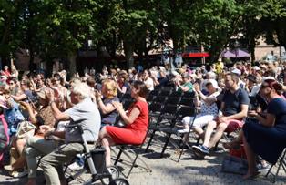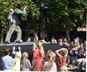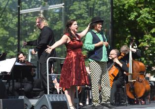 Impressie van Sing a Long op 26 juni 2019. Links boven: Raoul Steffani en Laetitia Gerards in een komisch duet. Hierboven: Raoul Steffanis als clown met een kleuter op zijn schouders. foto's © henk van esch. |