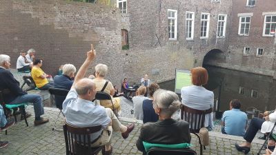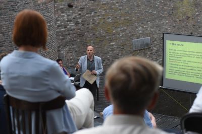 | Knillispoort: een keertje in de open lucht. Jan de Wit over 400 jaar geschiedenis van de krant in Nederland en ‘s-Hertogenbosch foto © henk van esch, 1 augustus 2020. .................................................................... |