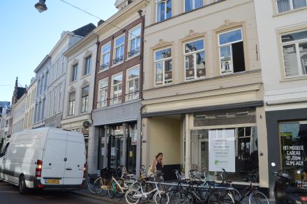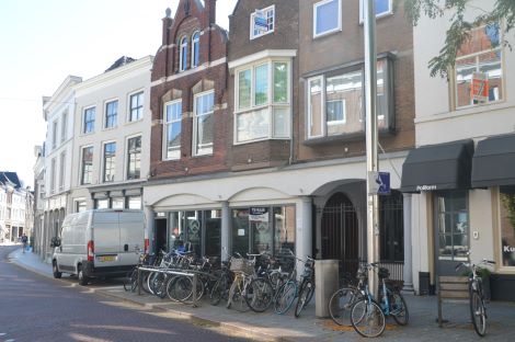 | -Boven : nummer 130 Studio Nellens waarvan de studio zich feitelijk aan de achterzijde [om de hoek] aan de Kuipertjeswal bevindt. Maar dit nr. 130 is een leegstaand winkelpandje. -Hieronder: De nummers 134-136 House Nutrition, Sportvoeding breakfast en lunches. Voorheen de verlichtingszaak van De Louw-van de Zanden, die naar Hinthamerstraat 125 verhuisde. foto's © paul kriele, 5 augustus 2020. |