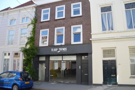 | -Boven: Hoekpand Kuipertjeswal Vughterstraat 150 uitzendbureau voor de horeca 'Mise en place', dat te koop staat. -Onder nummer 200 Slaaptrends, beddenzaak gespecialiseerd in matrassen. foto's © paul kriele, 5 augustus 2020. |